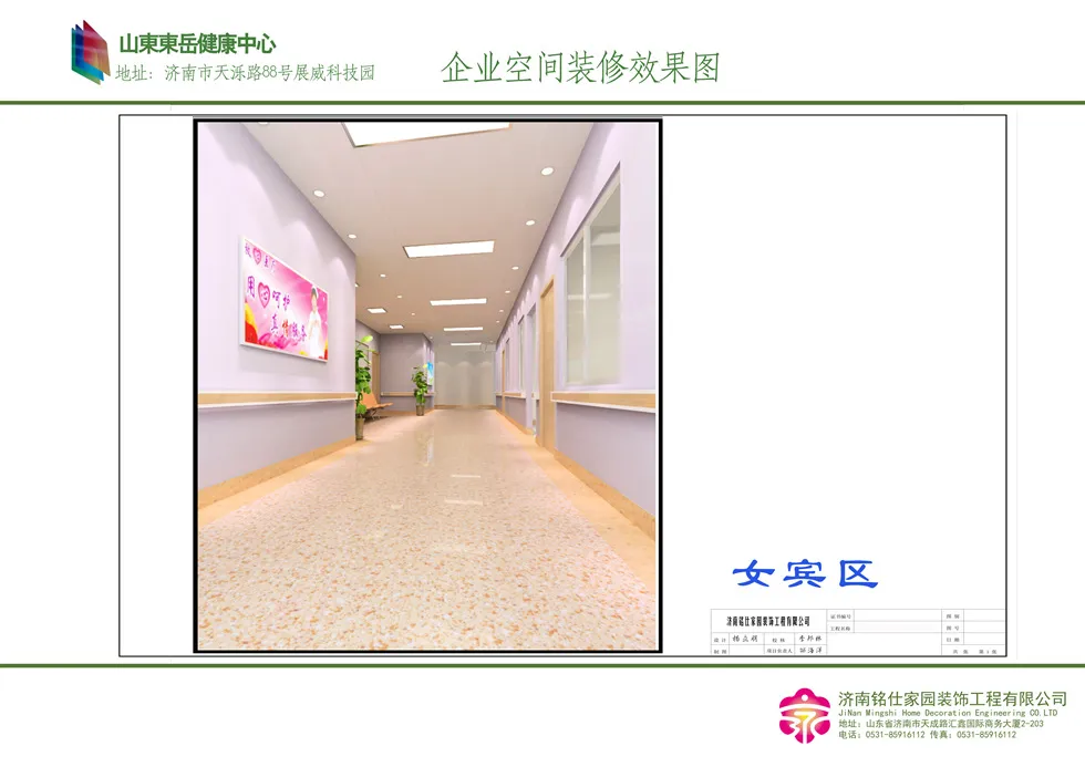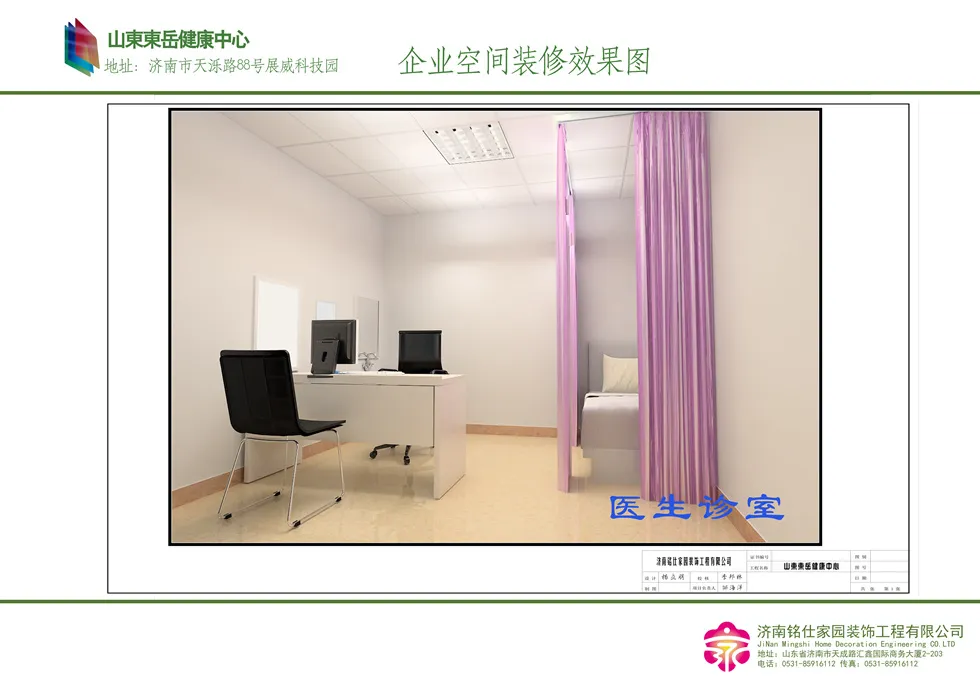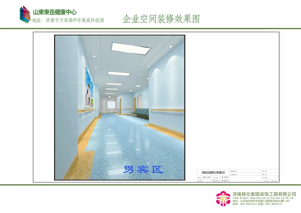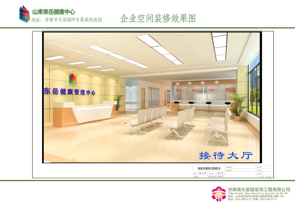 济南医院装修—山东东岳健康中心 字号:大中小 设计时间:2014-05-03至2014-08-20 设计面积:1500 平方米 项目类型:济南医疗机构装修 装修风格:现代时尚 案例设计说明: 济南医院装修—山东东岳健康中心