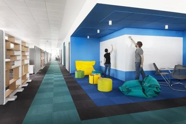 办公室墙面装修主要有几种方式:墙纸、乳胶漆、玻璃隔断等。