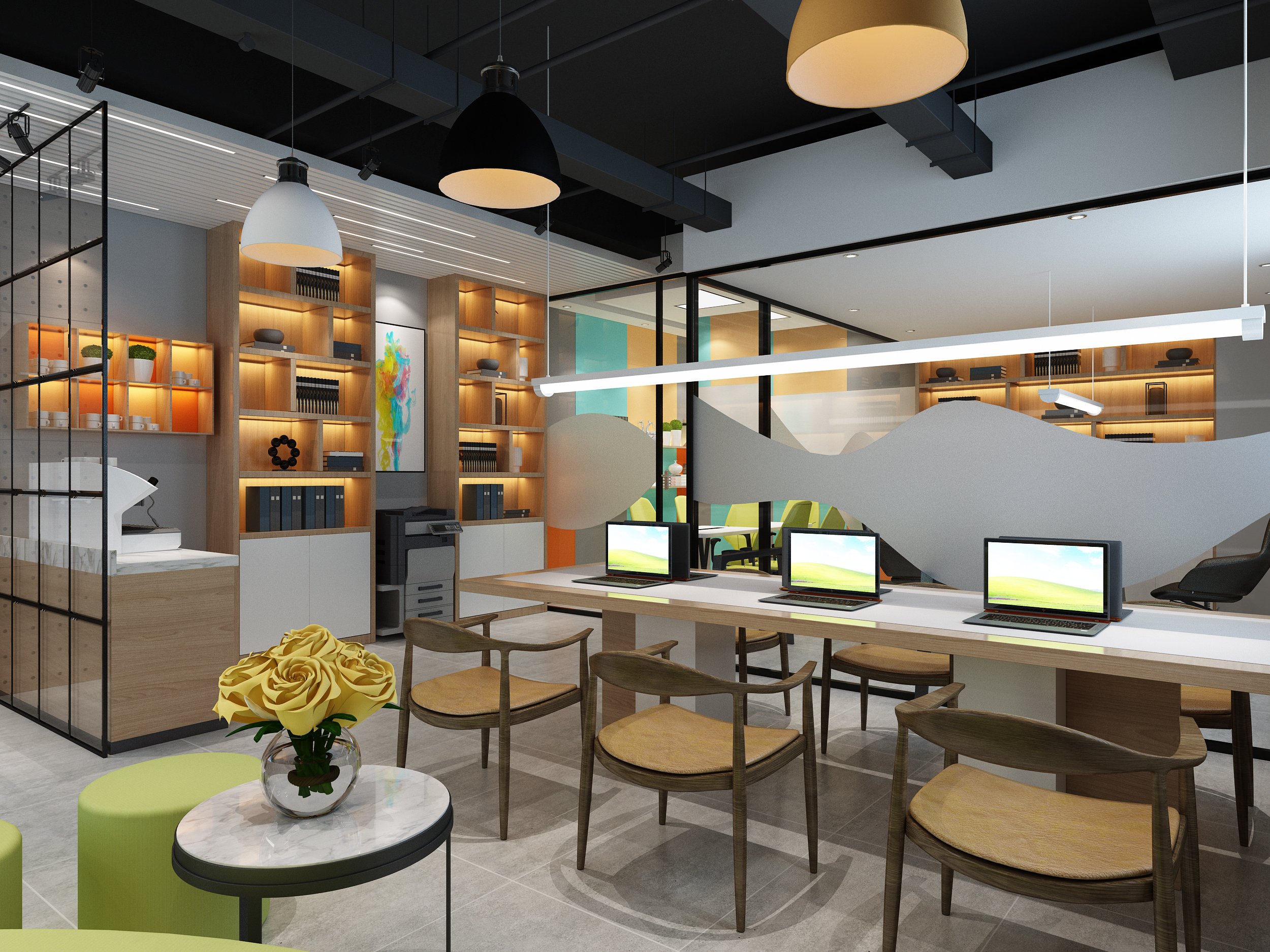 铭仕家园装饰打造的这组济南办公室装修案例,以开放式布局重构办公场景,通过玻璃隔断、温润木饰面与清新色彩,将协作区、休闲区、咖啡吧无缝串联,告别传统格子间的压抑感。