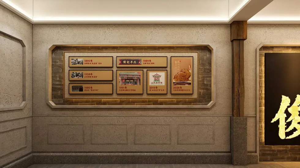 店内以原木与青砖为基底,卤料展示柜、历史文化墙串联空间,既满足熟食售卖功能,又打造沉浸式品牌体验。作为专业济南店面装修服务商,项目全程一对一服务,保质保量保工期,用专业工装设计助力老字号焕发新生,彰显济南本土品牌魅力。